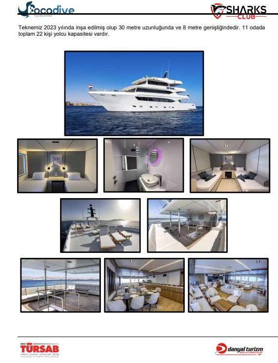 Teknemiz 2023 yılında inşa edilmiş olup 30 metre uzunluğunda ve 8 metre genişliğindedir. 11 odada